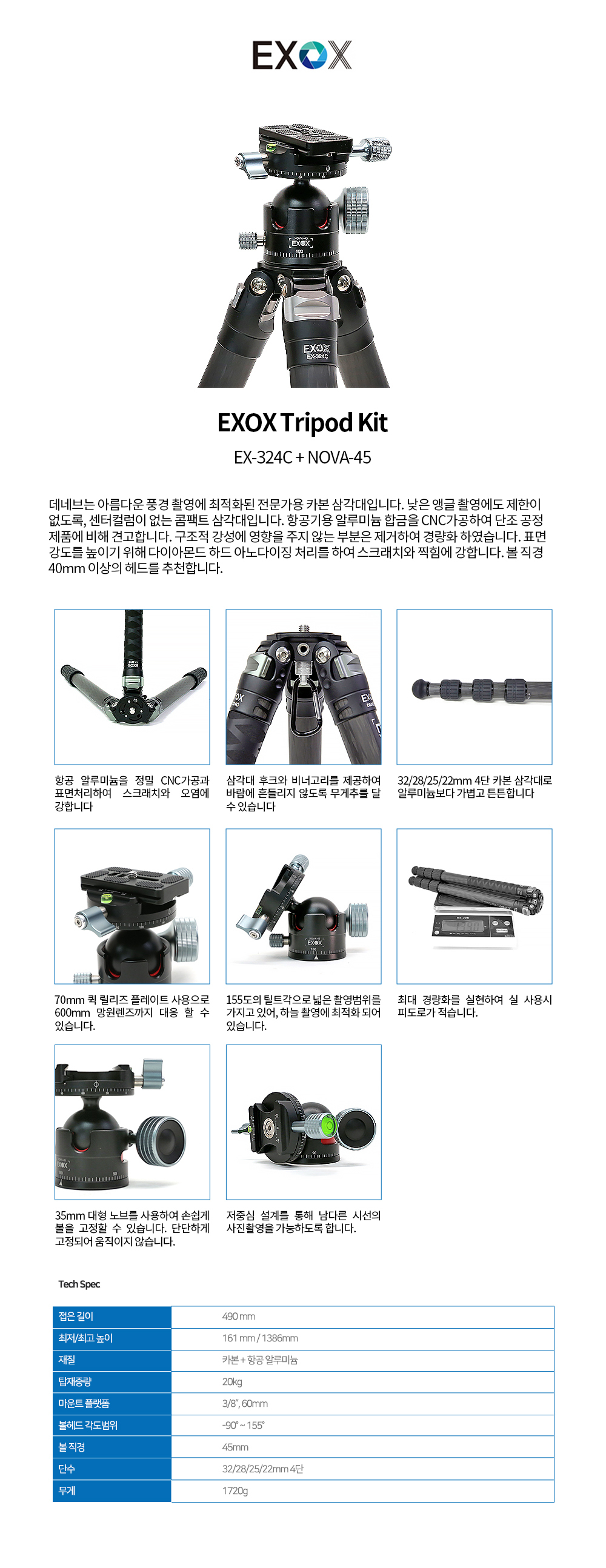 155° 스윙 가능하며 45mm 볼 헤드로 견고한 지지력을 가진 삼각대 킷