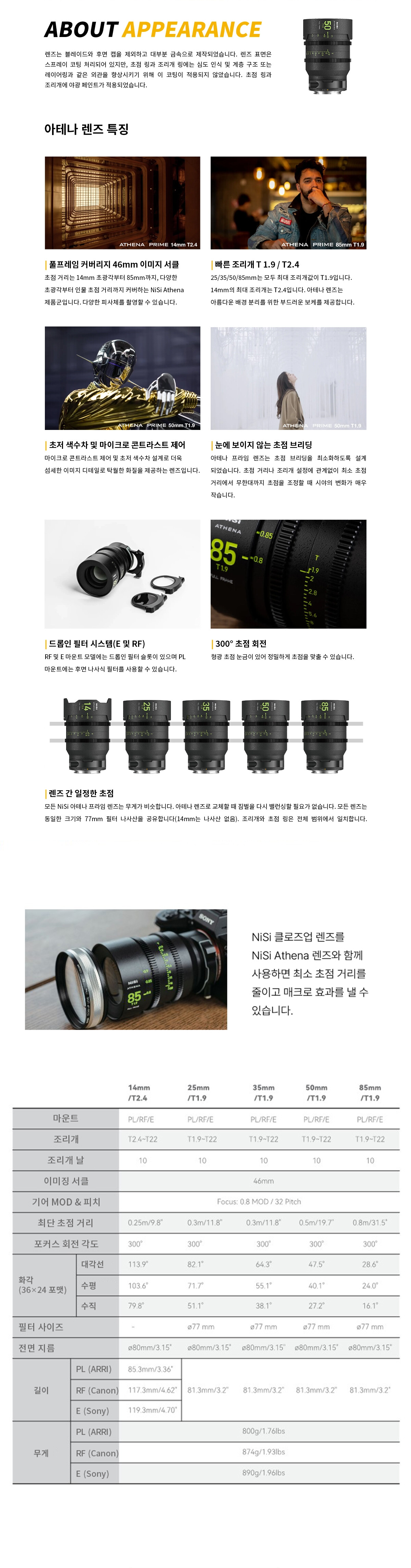NiSi Athena Prime Lens RF / E(드롭인, 드롭인 아님) / PL 마운트