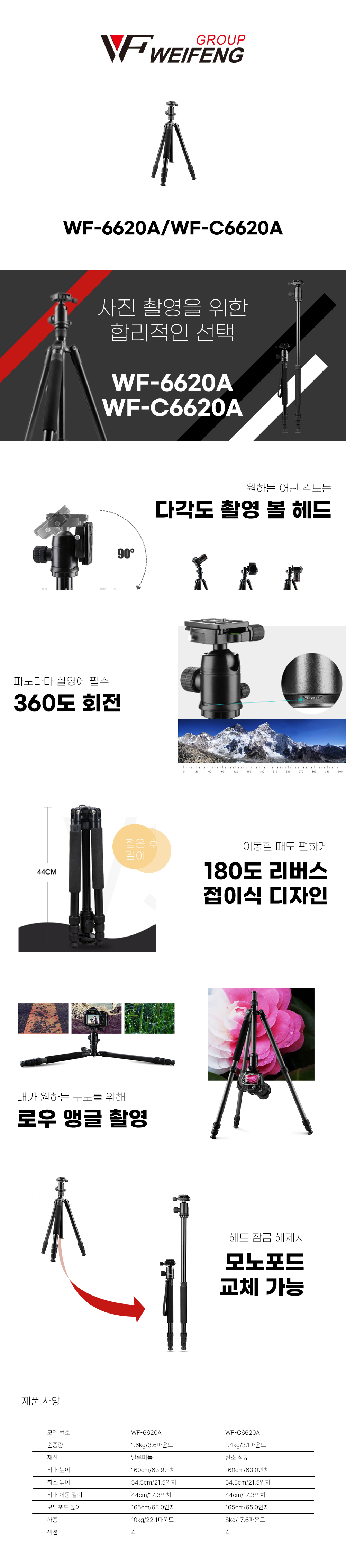 웨이펑 사진 삼각대 WF-6620A WF-C6620A