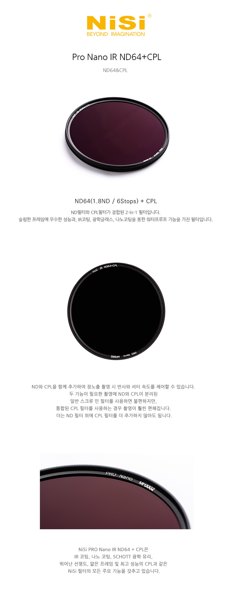 요약설명 ND필터와 CPL필터가 하나로합쳐진 2-in-1 필터입니다.
