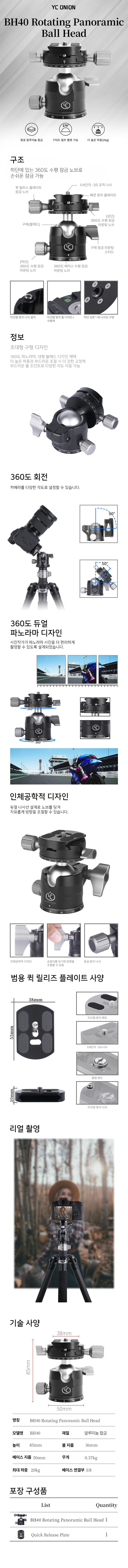 YC Onion BH40 Rotating Panoramic Ball Head - Load 20kg