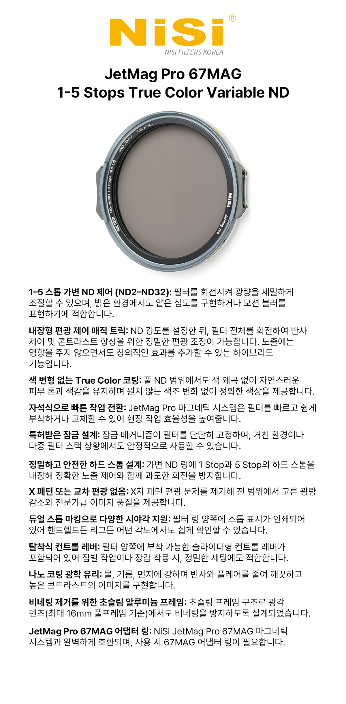 제트맥 프로 1-5 Stops True Color VND - JetMag Pro 67MAG