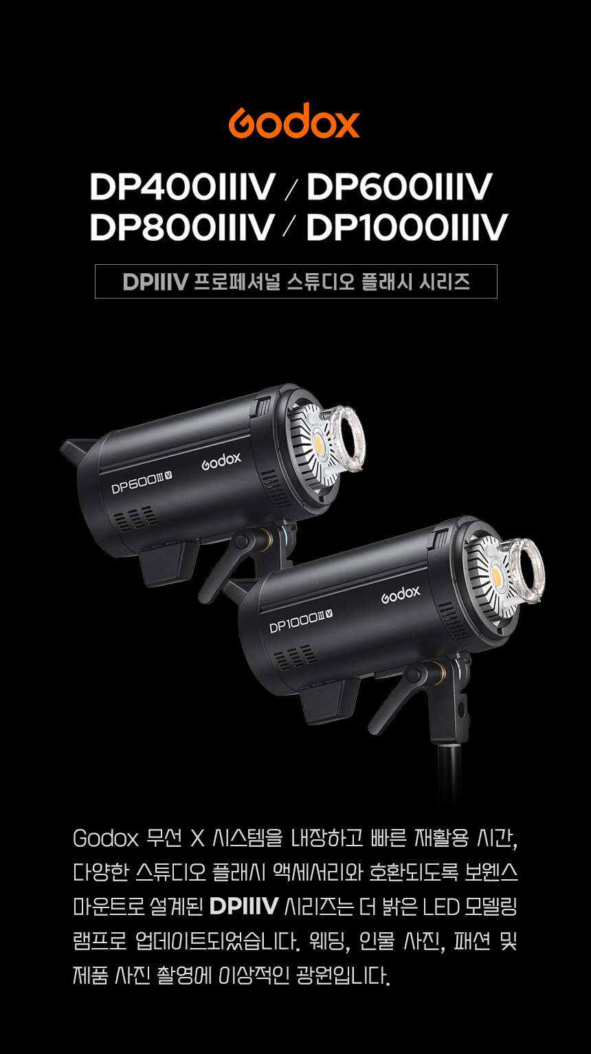 Godox DP600IIIV 촬영 조명 카메라 스튜디오 스트로브 600W