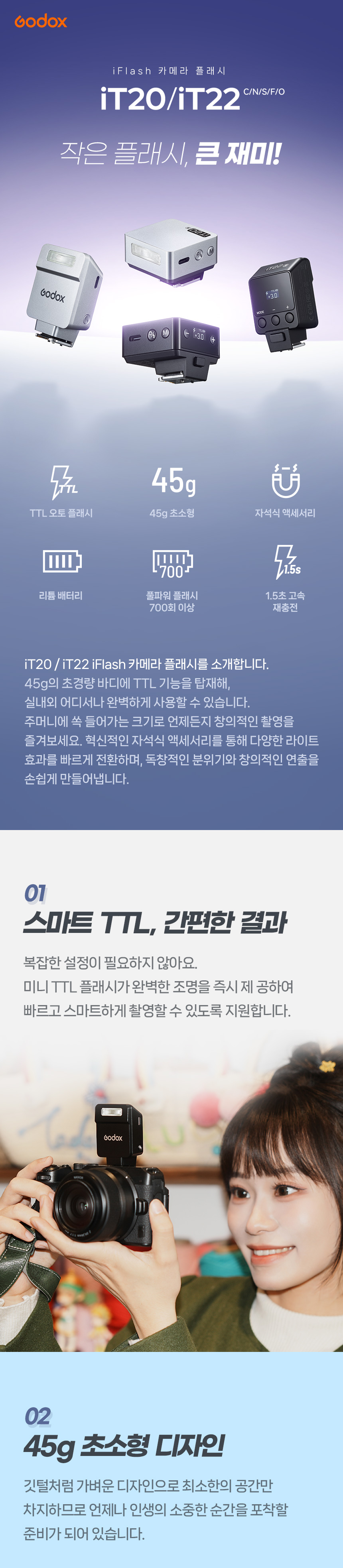 고독스 IFlash iT20 미니 포켓 사진 촬영용 TTL 스트로브 카메라 플래시 스피드라이트 조명